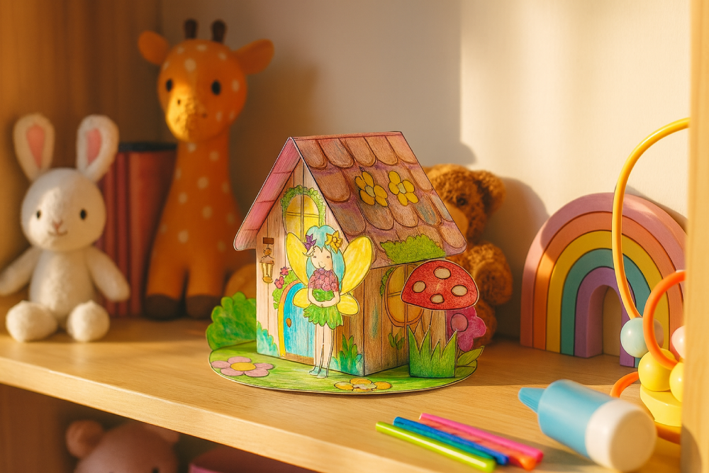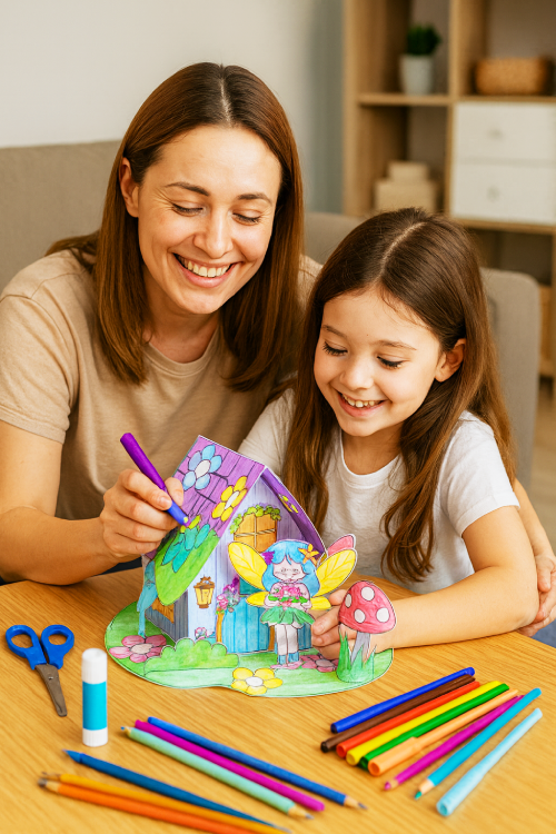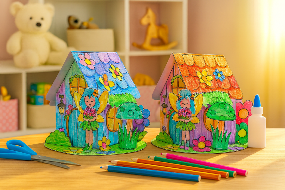 Crie momentos inesquecíveis de artesanato com seus pequenos com esta adorável Casa de Fadas de Papel — perfeita para diversão diária e brincadeiras criativas!